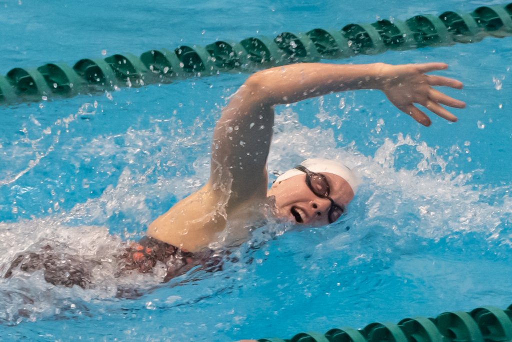 Thirdly, you have to find proper body alignment. This will be much easier if you have your coach look at your position with a snorkel on while swimming and from there, he/she can correct you. But a good rule of thumb is only about 4 inches of the snorkel’s tube should be showing above the surface of the water. This means, your head needs to be down!