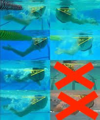 Just like Freestyle, Backstroke requires rotation—but the main difference is it requires MORE rotation than Freestyle (40-degrees as opposed to 30-degrees). You basically want to see a straight line from shoulder to elbow on an underwater frame (see below).